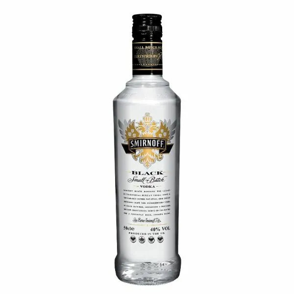 Smirnoff Black Vodka is the premium variant of Smirnoff is pot-distilled and filtered through seven tons of charcoal in a painstaking production process designed to produce a vodka of rare purity.